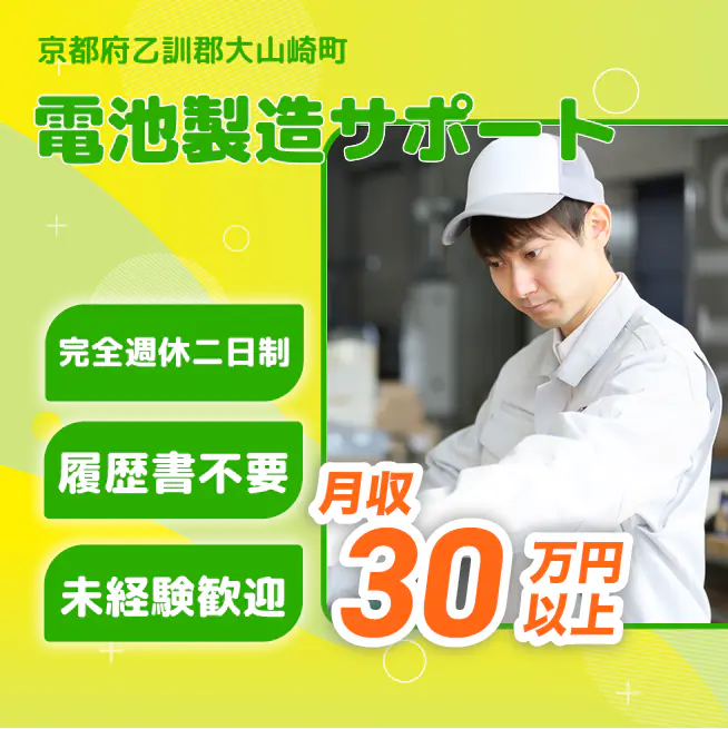 給与詳細 月収例 328,000円 日給例 16,400円 勤務地 京都府乙訓郡大山崎町 仕事内容 【業務内容】