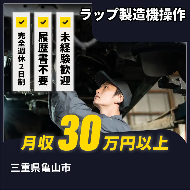 給与詳細 月収例 321,750円 時給例 1,650円 勤務地 三重県亀山市 仕事内容 フィルム製造機のオペレーター業務です。ラップを芯に巻きつける業務です。その他、外見検査、簡単な機械のメンテナンスをお任せいたします。