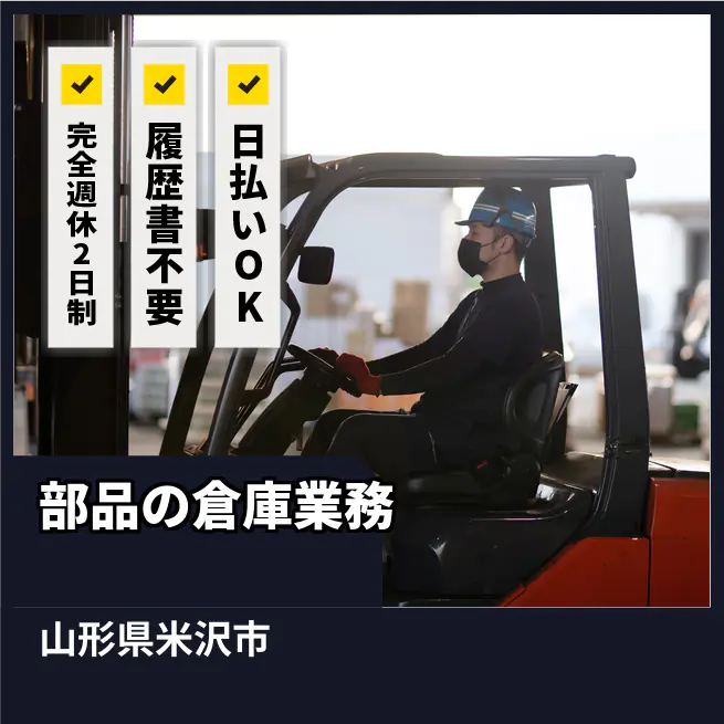 給与詳細 月収例 234,000円 時給例 1,200円 勤務地 山形県米沢市 仕事内容 【業務内容】