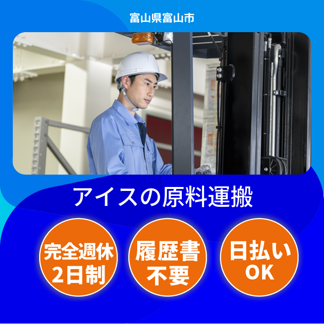 給与詳細 月収例 242,580円 時給例 1,244円 勤務地 富山県富山市 仕事内容 アイスクリームを生産する企業様でのお仕事です。製造ラインに入り原料の投入や運搬業務を行います。フォークリフトも使用します。
