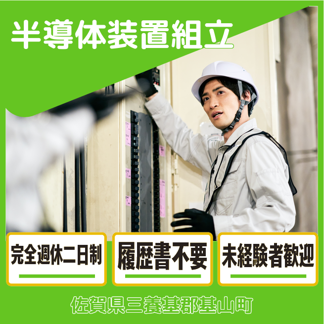 給与詳細 月収例 220,000円 日給例 11,000円 勤務地 佐賀県三養基郡基山町 仕事内容 半導体製造装置の組み立て業務