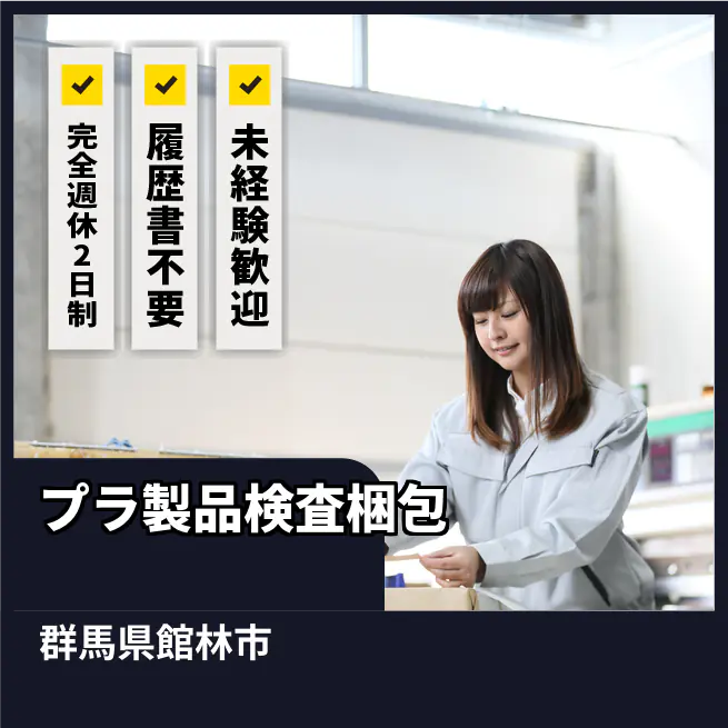 給与詳細 月収例 160,000円 時給例 1,200円 勤務地 群馬県館林市 仕事内容 【業務内容】
