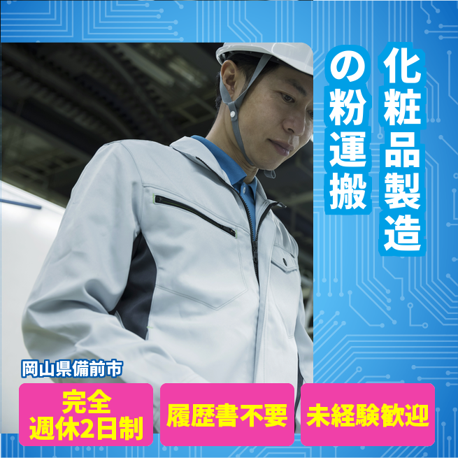給与詳細 月収例 292,500円 日給例 12,000円 勤務地 岡山県備前市 仕事内容 【業務内容】