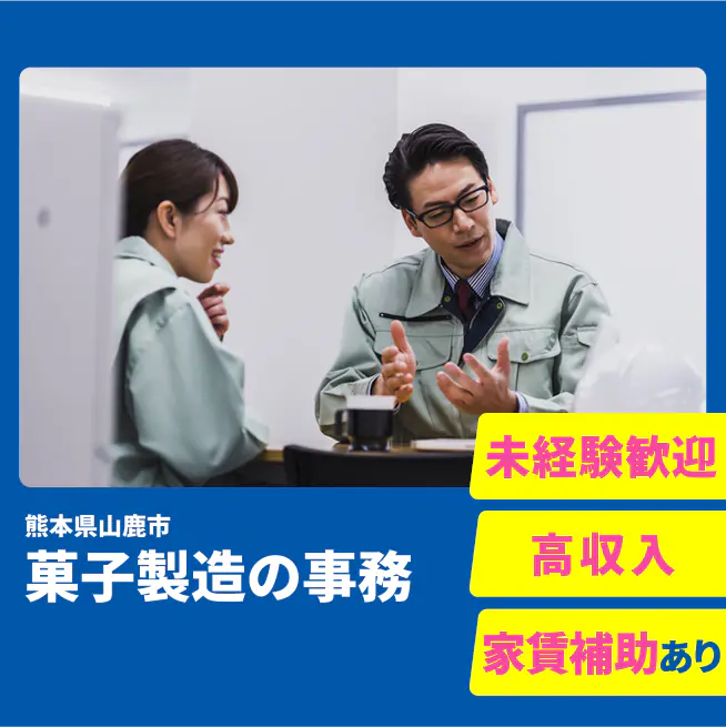 22.5~24.4万円 交通費 支給あり 応募の流れ 本ページ内<応募する>ボタンより、必要項目をご入力の上、ご応募ください。 勤務地 【勤務地】熊本県山鹿市- 勤務時間 【勤務地】日勤