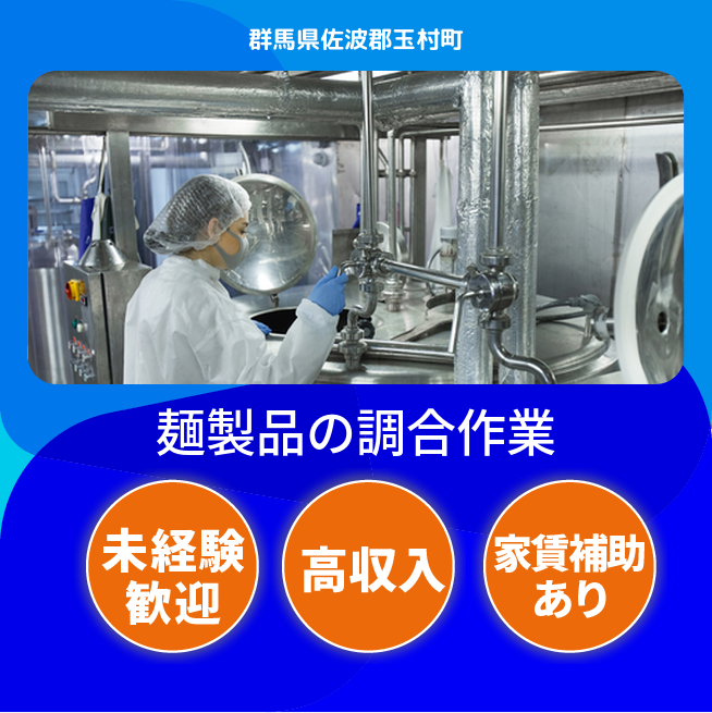 - 麺商品の原料を計量し、適切な量を投入する作業