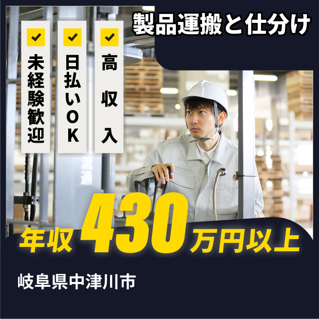 給与詳細 年収例 4,394,316円 月収例 366,193円 勤務地 岐阜県中津川市 仕事内容 【業務内容】