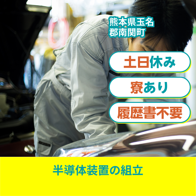 給与詳細 月収例 216,843円 時給例 1,112円 勤務地 熊本県玉名郡南関町 仕事内容 【半導体装置の組み立て】