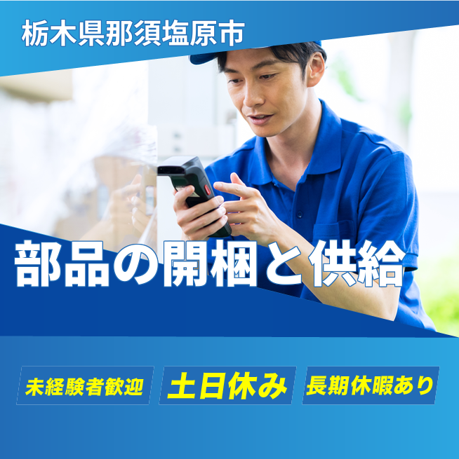 段ボールで届く部品を一度荷ほどきし、工場内の専用箱に仕分け、製造部門へ供給するお仕事です。