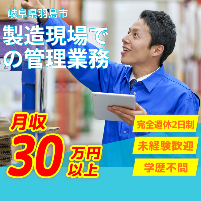 企業 株式会社バイトレ 給与詳細 月収例 300,000円 時給例 1,875円 勤務地 岐阜県羽島市 仕事内容 【業務概要】