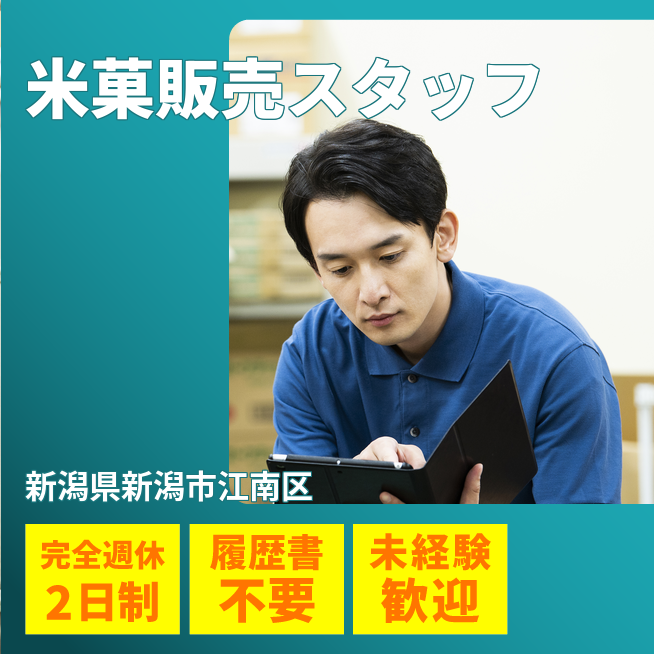 給与詳細 月収例 216,450円 時給例 1,110円 勤務地 新潟県新潟市江南区 仕事内容 工場直売所の販売スタッフ。レジ、品出し、在庫管理等。1~3名程度で管理します。