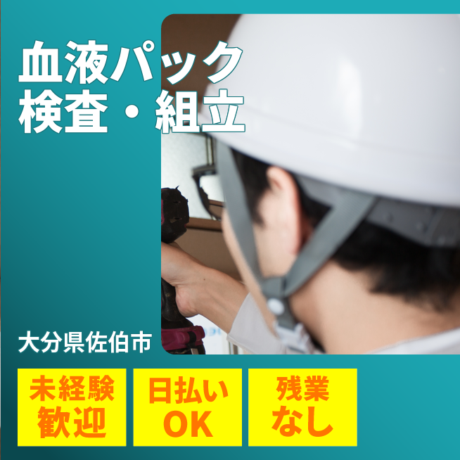 給与詳細 月収例 234,000円 日給例 10,400円 勤務地 大分県佐伯市 仕事内容 血液パックの組立・検査