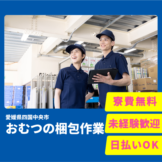 給与詳細 月収例 226,000円 時給例 1,200円 勤務地 愛媛県四国中央市 仕事内容 【業務内容】