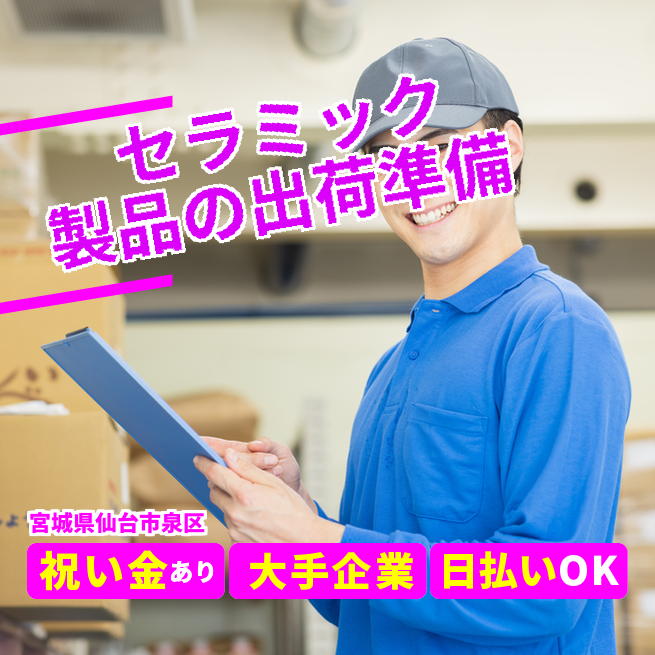 給与詳細 月収例 233,000円 時給例 1,220円 勤務地 宮城県仙台市泉区 仕事内容 セラミック製品の出荷前の製品を洗浄して出荷を行って頂きます。