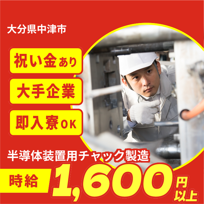給与詳細 月収例 294,000円 時給例 1,600円 勤務地 大分県中津市 仕事内容 【業務内容】