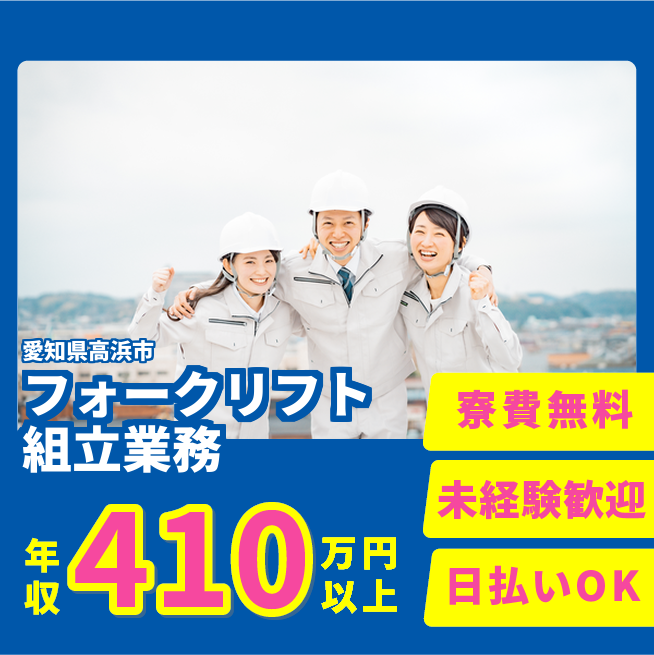 給与詳細 年収例 4,128,000円 月収例 344,000円 勤務地 愛知県高浜市 仕事内容 【業務内容】