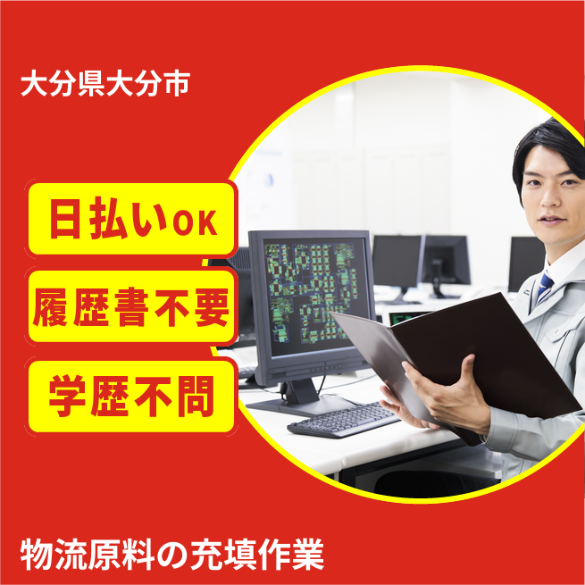 給与詳細 月収例 230,000円 日給例 10,400円 勤務地 大分県大分市 仕事内容 物流運搬作業原料をドラム缶へ充填、ほか運搬作業補助