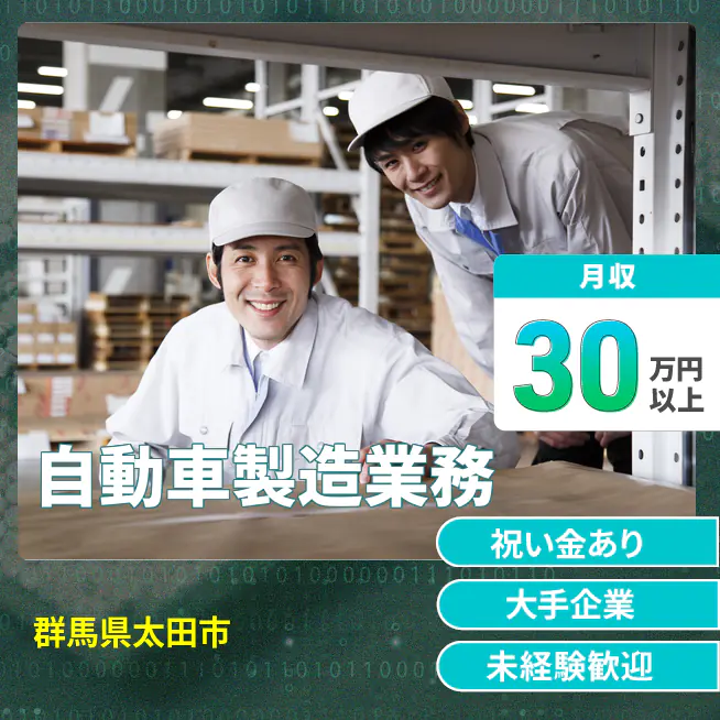 給与詳細 月収例 308,000円 日給例 11,000円 勤務地 群馬県太田市 仕事内容 【業務内容】