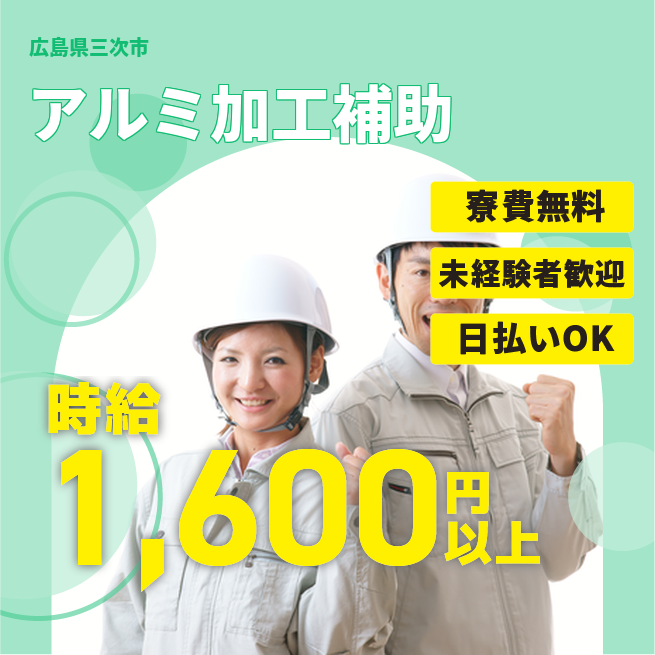 社員寮あり 速払い可 公開日 2026年02月01日 寮 その他 寮~工場 までの通勤時間:三次市内から車で20分