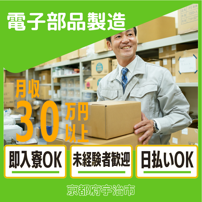 給与詳細 月収例 306,000円 日給例 10,400円 勤務地 京都府宇治市 仕事内容 【業務内容】