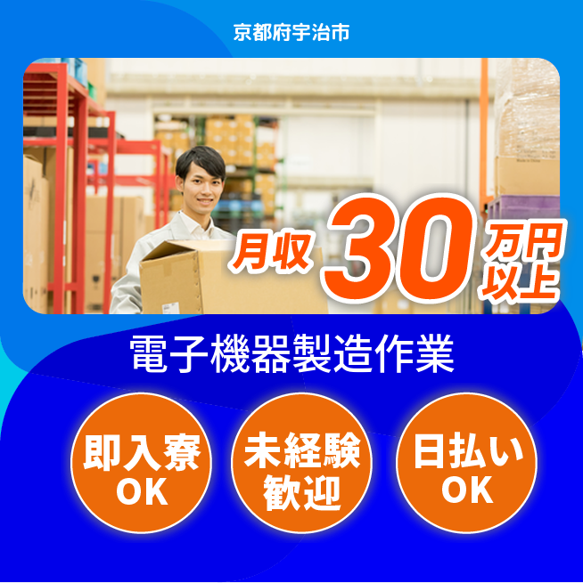 給与詳細 月収例 306,000円 日給例 10,400円 勤務地 京都府宇治市 仕事内容 【業務内容】