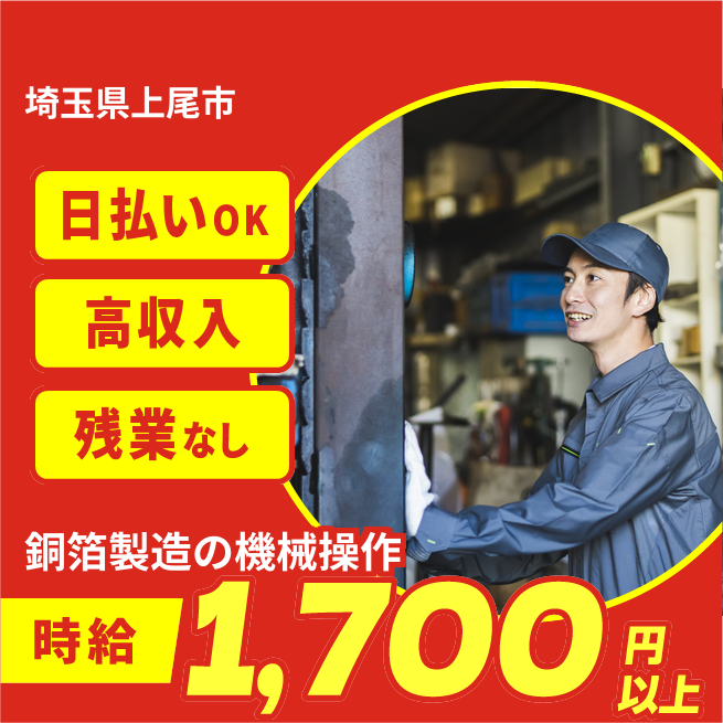 即日収入可【銅箔製造の機械操作】