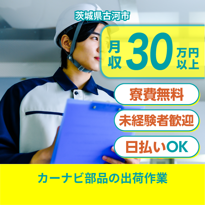 給与詳細 月収例 300,000円 時給例 1,600円 勤務地 茨城県古河市 仕事内容 カーナビ部品倉庫内での業務