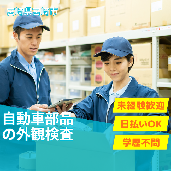 給与詳細 月収例 239,000円 時給例 1,200円 勤務地 宮崎県宮崎市 仕事内容 自動車部品の外観検査