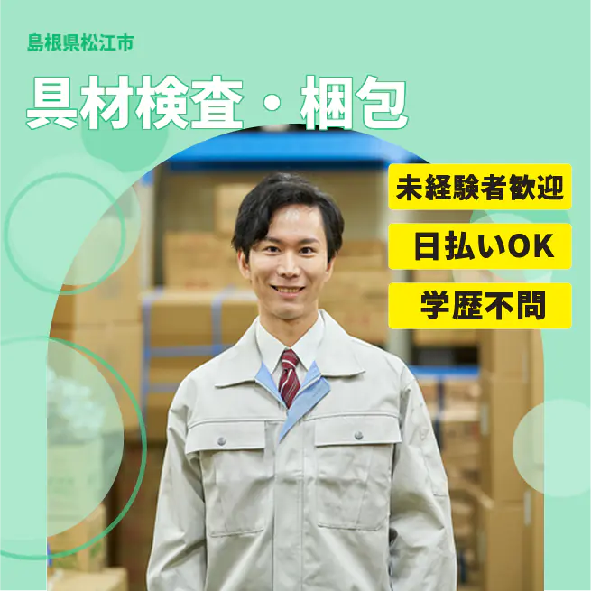 給与詳細 月収例 210,000円 時給例 1,090円 勤務地 島根県松江市 仕事内容 【業務内容】
