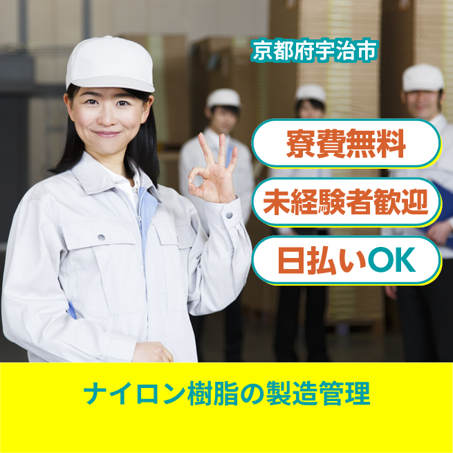 給与詳細 月収例 279,000円 日給例 11,200円 勤務地 京都府宇治市 仕事内容 ナイロン樹脂製造設備の運転・監視・管理業務及び原料投入作業