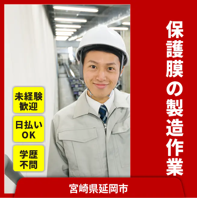 給与詳細 月収例 236,000円 日給例 10,800円 勤務地 宮崎県延岡市 仕事内容 半導体装置に使用される保護膜製造
