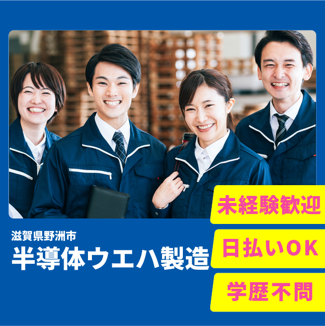 給与詳細 月収例 250,000円 日給例 11,040円 勤務地 滋賀県野洲市 仕事内容 半導体ウエハ製造オペレーター