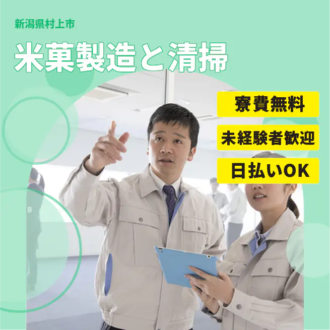 住居費ゼロ【米菓製造と清掃】
