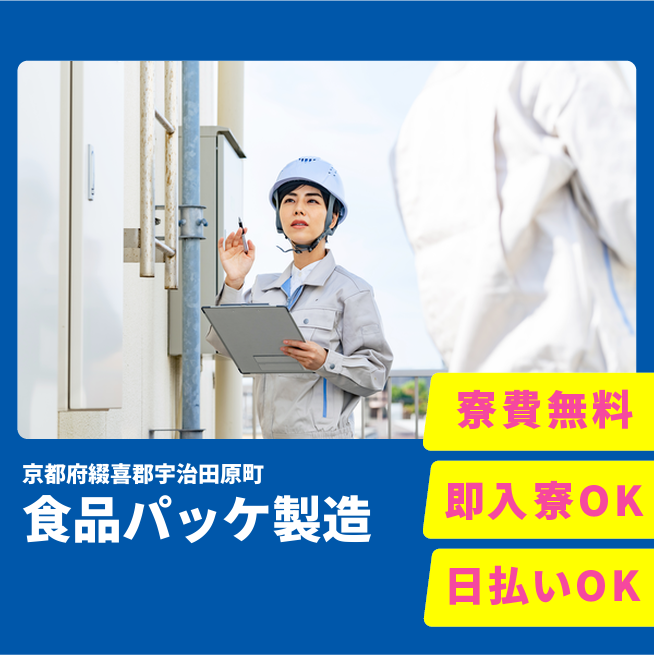 給与詳細 月収例 208,000円 時給例 1,200円 勤務地 京都府綴喜郡宇治田原町 仕事内容 【業務内容】