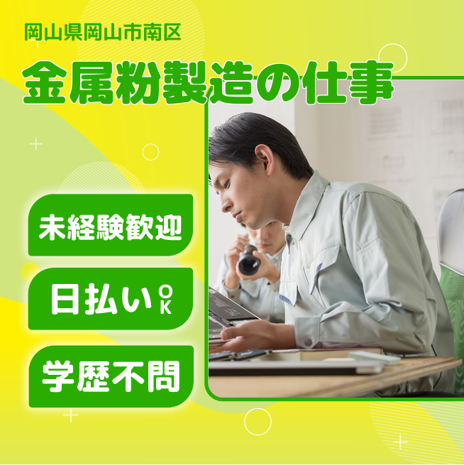 給与詳細 月収例 252,000円 日給例 10,400円 勤務地 岡山県岡山市南区 仕事内容 【業務内容】