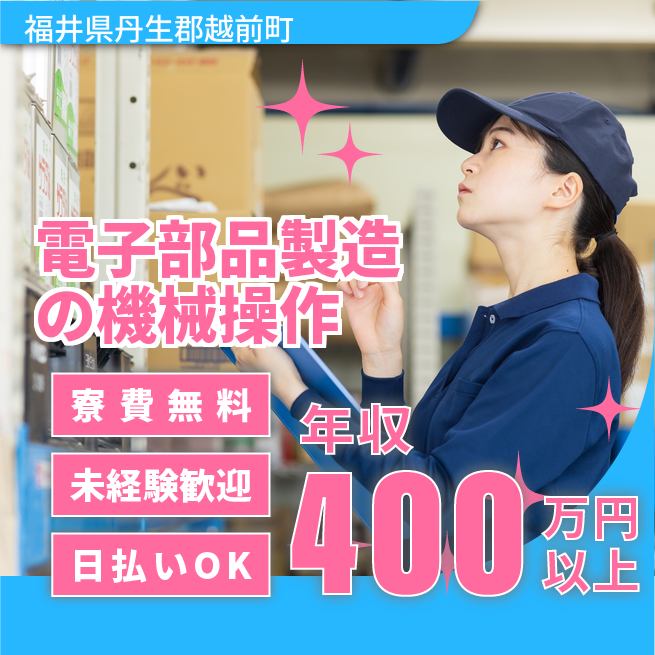 給与詳細 年収例 4,068,000円 月収例 339,000円 勤務地 福井県丹生郡越前町 仕事内容 電子部品製造機械オペレーター