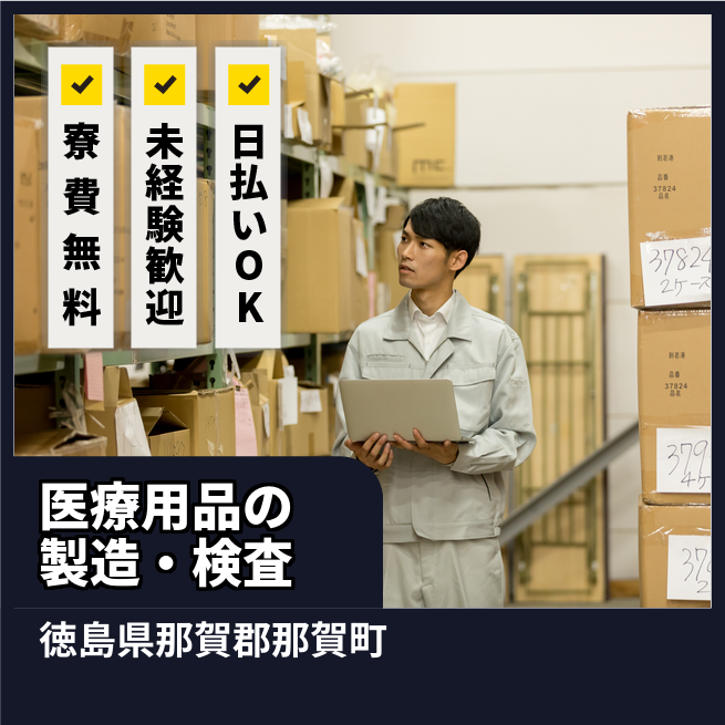 給与詳細 月収例 190,000円 時給例 1,200円 勤務地 徳島県那賀郡那賀町 仕事内容 医療用品・プラスチック製品の製造・目視検査・梱包業務