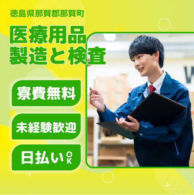 医療用品とプラスチック製品の製造、検査、梱包を行う仕事です。