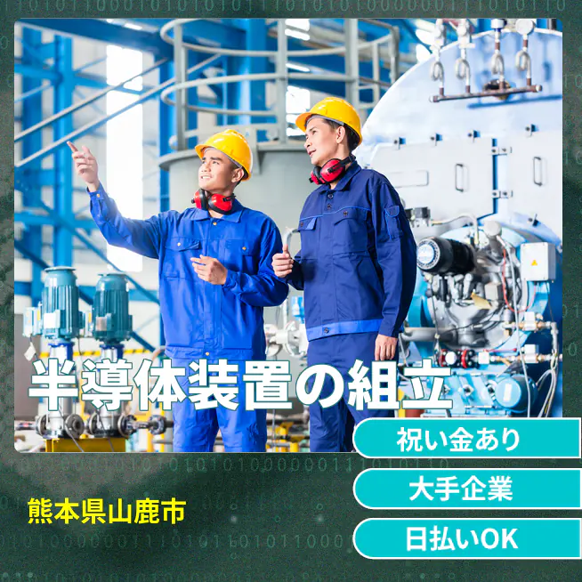 休出0H 【入社祝い金】 入社祝い金有り 交通費 支給あり 応募の流れ 本ページ内<応募する>ボタンより、必要項目をご入力の上、ご応募ください。 勤務地 【勤務地】熊本県山鹿市久原 勤務時間 【勤務地】★就業時間