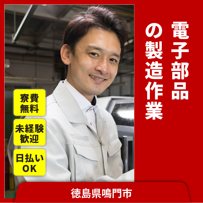 給与詳細 月収例 190,000円 時給例 1,200円 勤務地 徳島県鳴門市 仕事内容 電子部品の製造(金属板の成型、プレス、組立、検査)