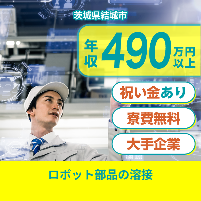 給与詳細 年収例 4,980,000円 月収例 415,000円 勤務地 茨城県結城市 仕事内容 ◆ロボット用部品の製造に伴う溶接業務