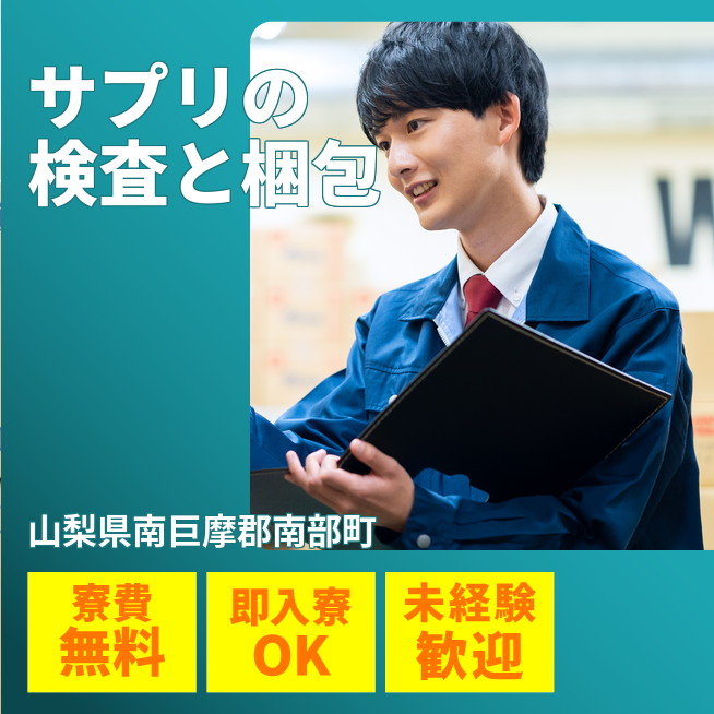 給与詳細 月収例 295,000円 日給例 12,400円 勤務地 山梨県南巨摩郡南部町 仕事内容 ■顆粒サプリメント製造
