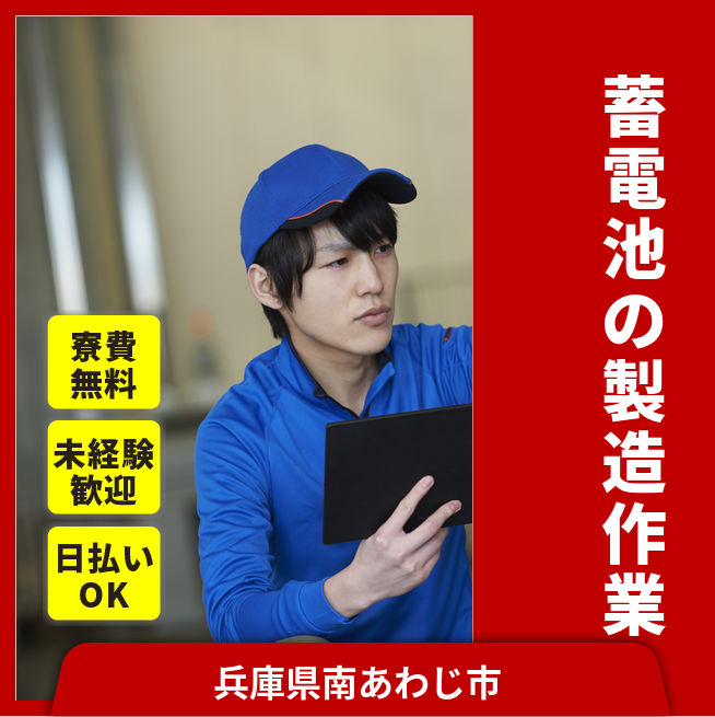 給与詳細 月収例 270,000円 日給例 12,000円 勤務地 兵庫県南あわじ市 仕事内容 蓄電池の製造