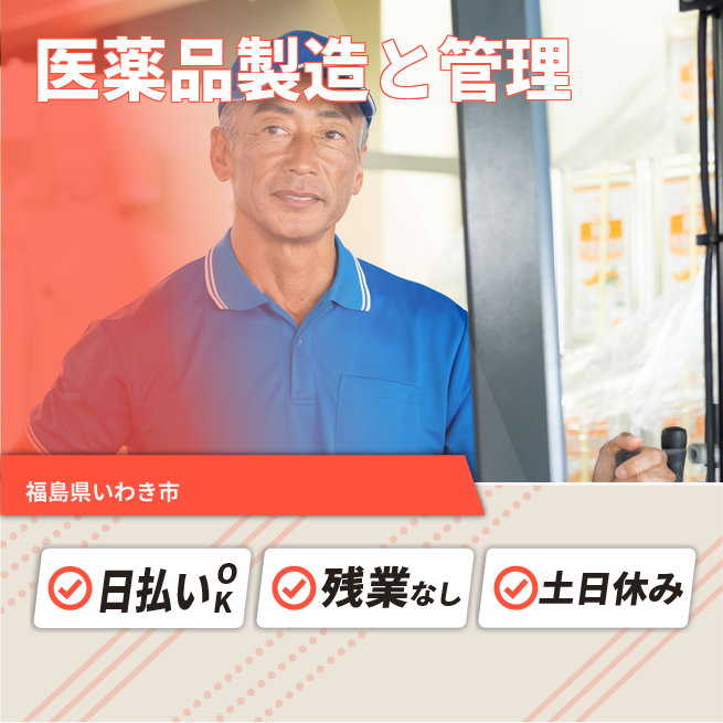 給与詳細 月収例 186,000円 時給例 1,200円 勤務地 福島県いわき市 仕事内容 大手医薬品メーカーで医薬品製造のお仕事です。