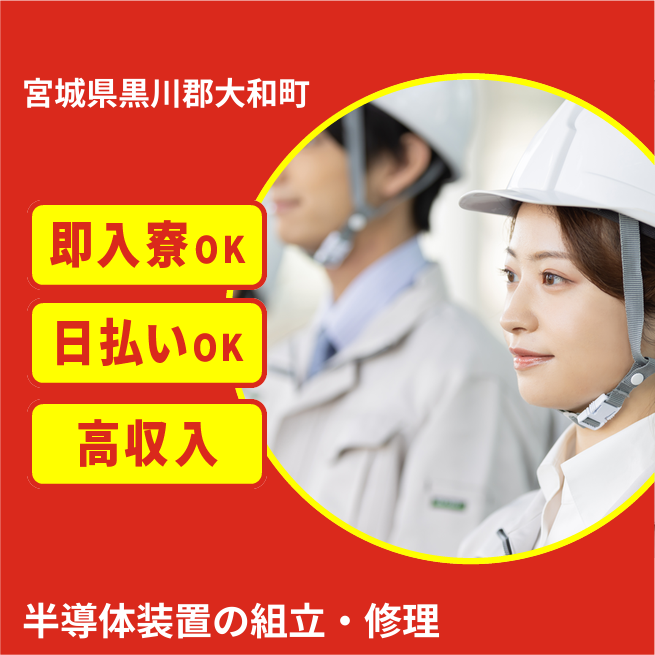 給与詳細 月収例 293,000円 日給例 12,000円 勤務地 宮城県黒川郡大和町 仕事内容 【業務内容】
