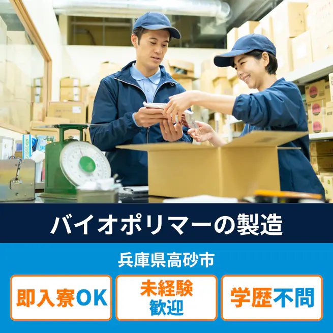 業務内容の変更範囲:無 プラスチックストローや蓋、プラスチックスプーン、紙パックに使用される生分解性バイオポリマーの製造※免許保持者はフォークリフト使用あり