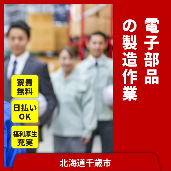 給与詳細 月収例 297,000円 日給例 10,550円 勤務地 北海道千歳市 仕事内容 電子部品の製造・検査
