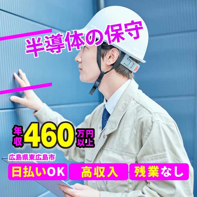休出10.50H 交通費 支給あり 応募の流れ 本ページ内<応募する>ボタンより、必要項目をご入力の上、ご応募ください。 勤務地 【勤務地】広島県東広島市吉川工業団地 勤務時間 【勤務地】★就業時間
