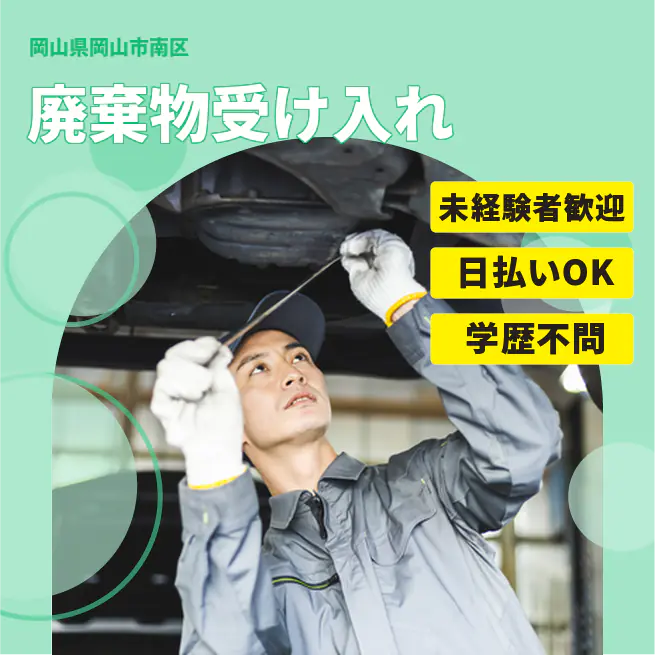 給与詳細 月収例 236,000円 日給例 10,400円 勤務地 岡山県岡山市南区 仕事内容 【業務内容】