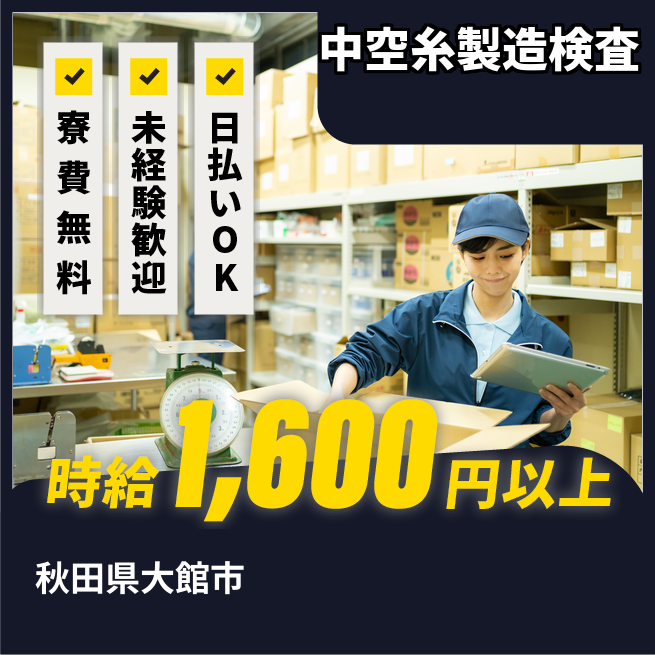 給与詳細 月収例 268,000円 時給例 1,600円 勤務地 秋田県大館市 仕事内容 【業務内容】
