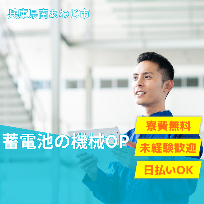 給与詳細 月収例 240,000円 日給例 12,000円 勤務地 兵庫県南あわじ市 仕事内容 蓄電池の製造